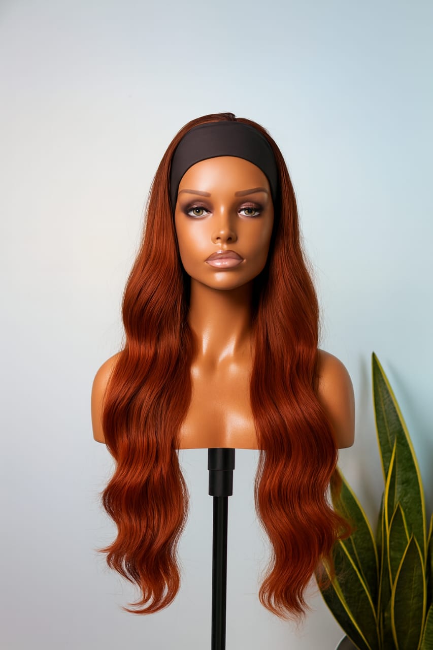 A soft 24 Inch, rich dark-ginger shade inspired by the warmth of “grace in every season.” This high-quality, high-temperature synthetic blend gives effortless body and movement, perfect for everyday elegance. Designed with a comfortable headband for quick, secure wear—beauty that reminds you of God’s gentle touch.